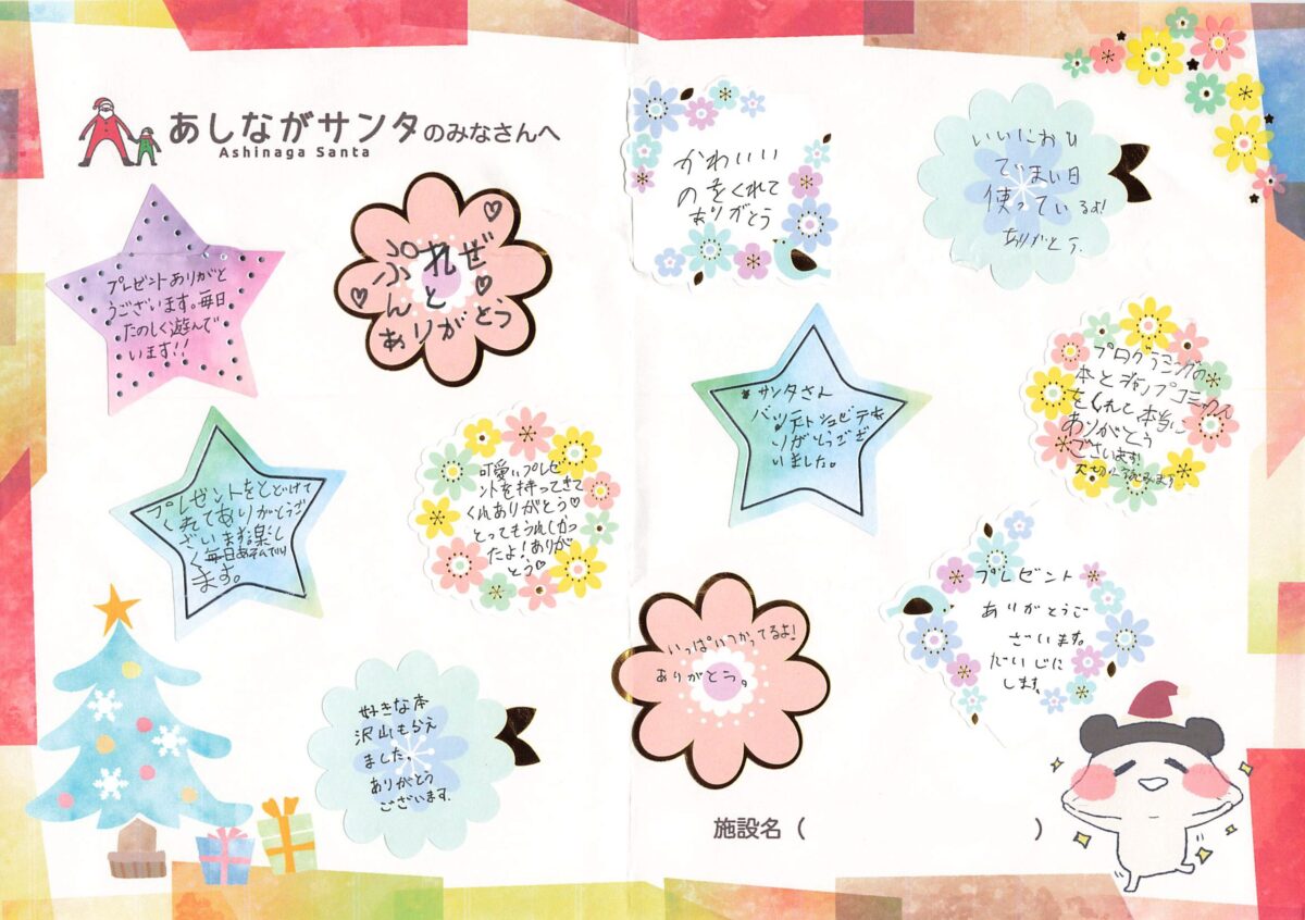 令和7年度「あしながサンタ」でご寄付を届けた児童養護施設の子どもたち・職員さんから財団に届いたお礼のメッセージの紹介ページです。